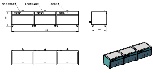 超聲波清洗機(jī)槽內(nèi)有效尺寸:1000×600×600(長×寬×高)mm。